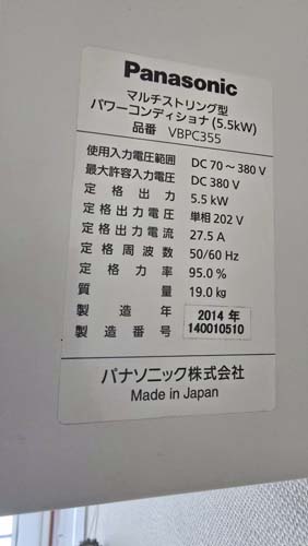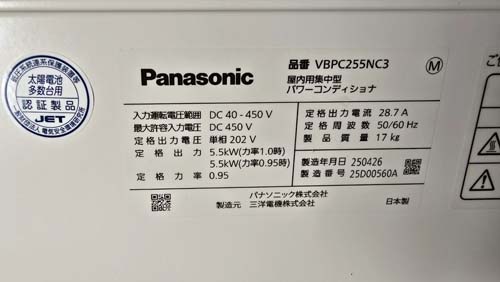 別府市北浜 パナソニック パワコンディショナ屋内用集中型VBPC255NC3 パワコン交換工事|大分で壊れたパワコン交換修理は最短即日対応|大分パワコン交換ショップ